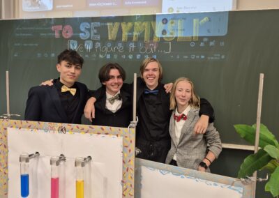 Vítězem letošního ročníku se stal tým To se vymyslí…, jehož členkou byla i Lucie Žilavá z 1G. Ve finálovém pokusu se tým zaměřil na barvy CMYK a jednoduchým experimentem vysvětlil princip jejich kombinování v tiskárně, pohlcování a odrazu světla a tím i vznik barev.